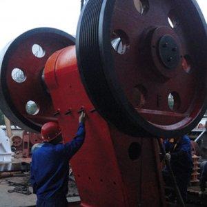 顎式破碎機俗稱顎破,又名老虎口。由動顎和靜顎兩塊顎板組成破碎腔,模擬動物的兩顎運動而完成物料破碎作業的破碎機。顎式破碎機在礦山、建材、基建等部門主要用作粗碎機和中碎機。按照進料口寬度大小來分為大、中、小型三種,進料口寬度大于600MM的為大型機器,進料口寬度在300-600MM的為中型機,進料口寬度小于300MM的為小型機。顎式破碎機結構簡單,制造容易,工作可靠。顎式破碎機的工作部分是兩塊顎板,一是固定顎板(定顎),垂直(或上端略外傾)固定在機體前壁上,另一是活動顎板(動顎),位置傾斜,與固定顎板形成上大下小的破碎腔(工作腔)。活動顎板對著固定顎板做周期性的往復運動,時而分開,時而靠近。分開時,物料進入破碎腔,成品從下部卸出;靠近時,使裝在兩塊顎板之間的物料受到擠壓,彎折和劈裂作用而破碎。